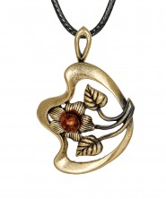 Подвески в виде цветов, веточек, растений из янтаря и латуни